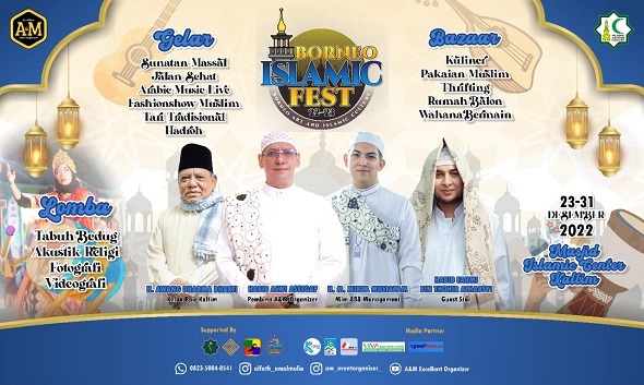 SAMARINDA (NK) – Mengulang sukses Event Borneo Muharram dan Borneo Maulid Fest 2022 serta menutup akhir tahun 2022. Yayasan Al Fath Amal Mulia bekerjasama dengan MIM Social Foundation Samarinda dibawah pimpinan H. Mirza Multazam dan Badan Islamic Center Samarinda kembali menggelar Borneo Islamic Fest 2022 pada tanggal 23 -31 Desember 2022 di halaman Islamic Center Jalan Untung Suropati Samarinda.