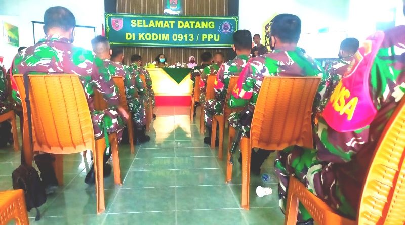 PENAJAM (NK) – Menindaklanjuti Surat Edaran Nomor : 04 tahun 2021 tentang peringatan hari lahir Pancasila jatuh pada 1 Juni 2021, Kodim 0913/Penajam Paser Utara (PPU), menggelar upacara peringatan secara virtual dilaksanakan, Selasa (01/6/2021) di Aula Makodim dipimpin Kasdim 0913/PPU, Mayor Czi Jumani diikuti para perwira dan perwakilan anggota staf Makodim.
