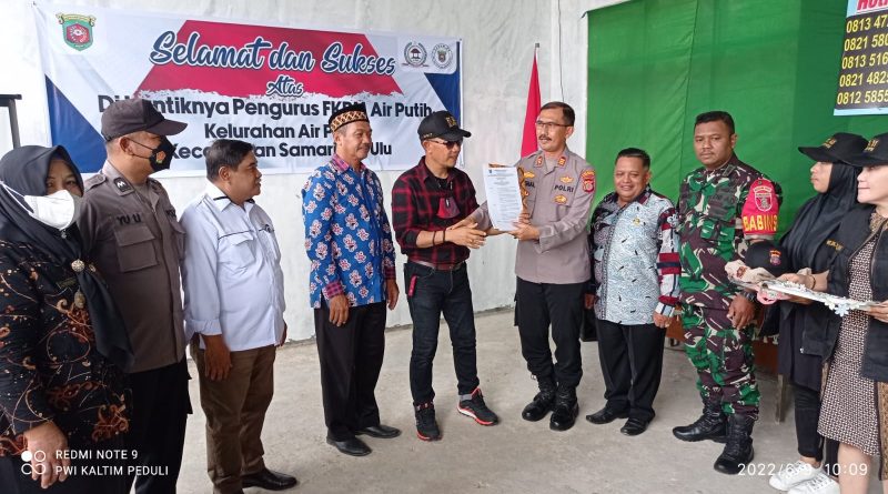 Ketua FKPM Kelurahan Air Putih Sigit Pramono didamping Sekretaris Arie Yudiartha mengatakan bahwa FKPM Air Putih sudah terbentuk sejak 8 bulan lalu, namun baru saat ini sempat dilantik dan diserahkan SK Kepengurusan disampaikan Kapolsek Samarinda Ulu.