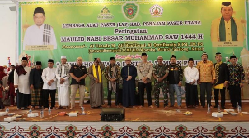 PENAJAM (NK) – Dewan Pengurus Daerah Lembaga Adat Paser (DPD LAP) Kabupaten Penajam Paser Utara (PPU) mengadakan peringatan Maulid Nabi Muhammad SAW 1444 H yang dirangkai dengan kegiatan Camp Sholawat dan Festival Tambak Pulut di aula lantai I Masjid Agung Al Ikhlas Nipah-Nipah, Jum’at (14/20/2022).