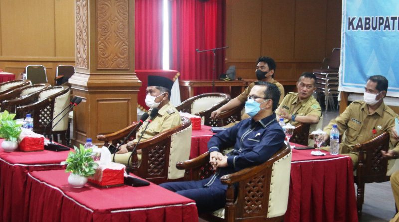 PENAJAM (NK) – Plt. Bupati Penajam Paser Utara (PPU) Hamdam ikuti rapat kerja (raker) bersama Menteri Dalam Negeri (Mendagri), Ketua Komisi Pemberantasan Korupsi (KPK) dan Lembaga Kebijakan Pengadaan Barang/Jasa Pemerintah (LKPP) yang digelar melalui video conference di Aula Lantai I Kantor bupati PPU, Senin, (24/1) pagi.