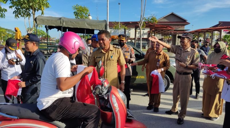 PENAJAM (NK) – Pemerintah Kabupaten (Pemkab) Penajam Paser Utara (PPU) membagikan bendera merah putih sebanyak 3.650 lembar kepada masyarakat. Kegiatan tersebut dalam rangka menyemarakkan peringatan Hari Ulang Tahun (HUT) ke-77 Kemerdekaan Republik Indonesia.